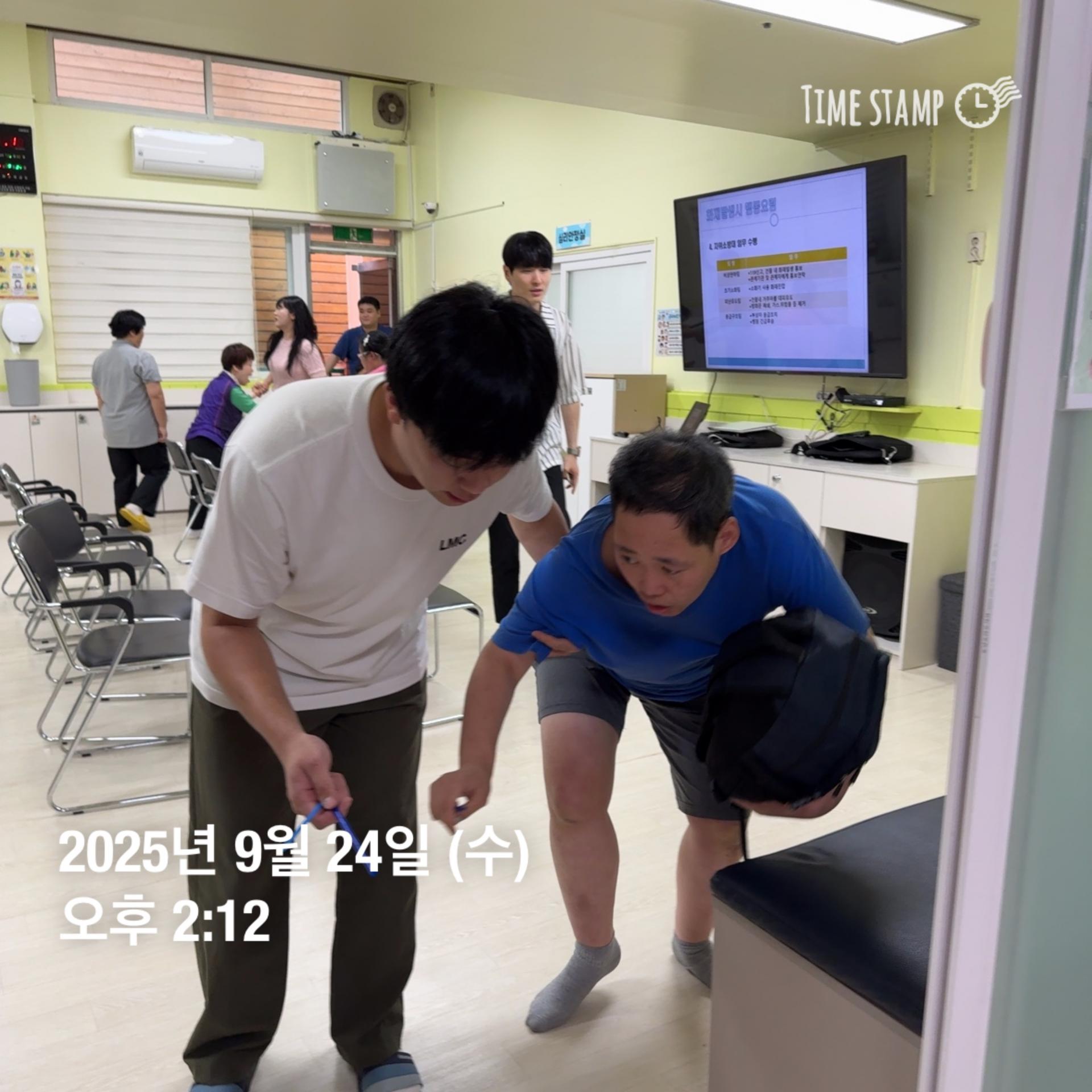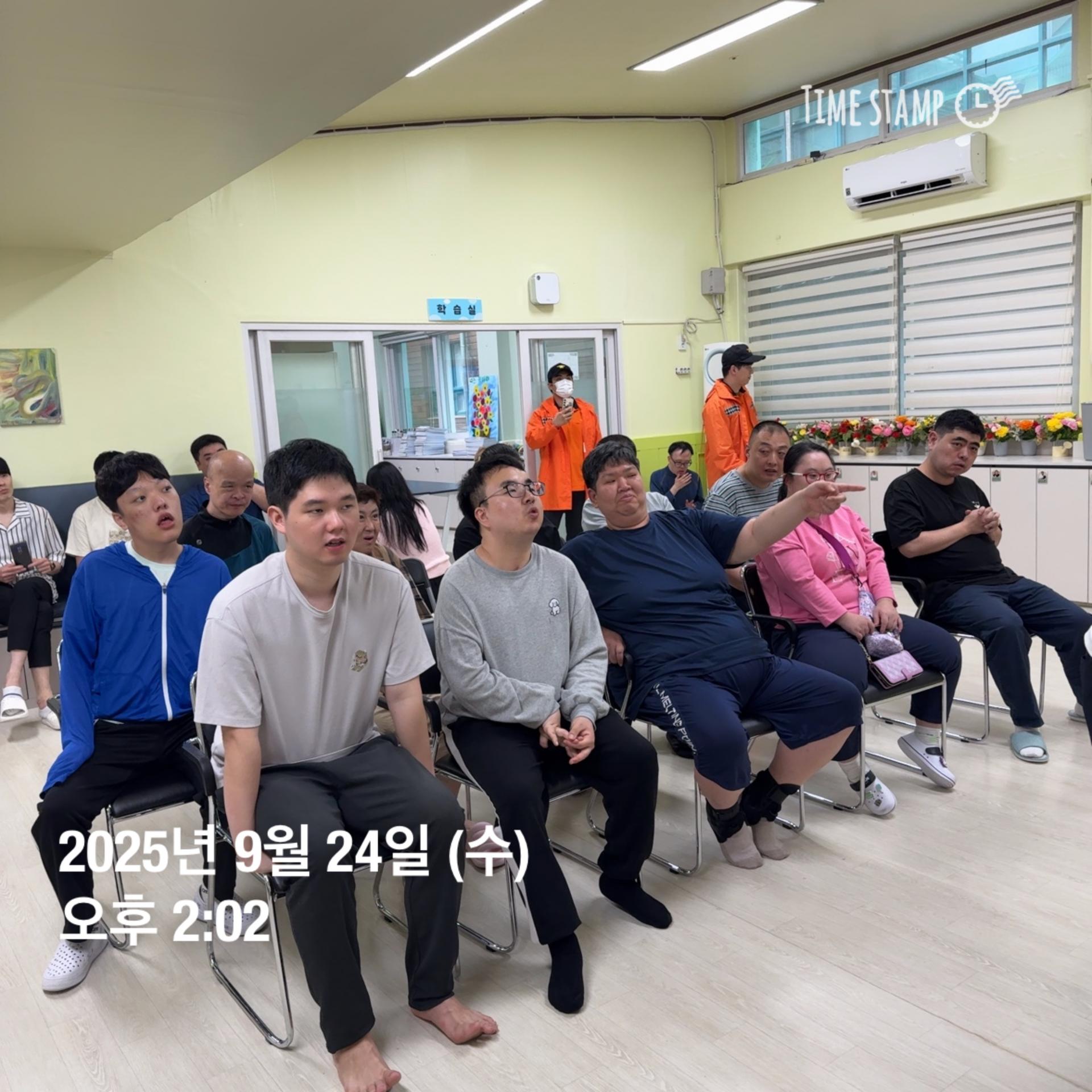 시설 이용인분들 뿐만 아니라 직원분들도 함께 훈련이 진행되었습니다.