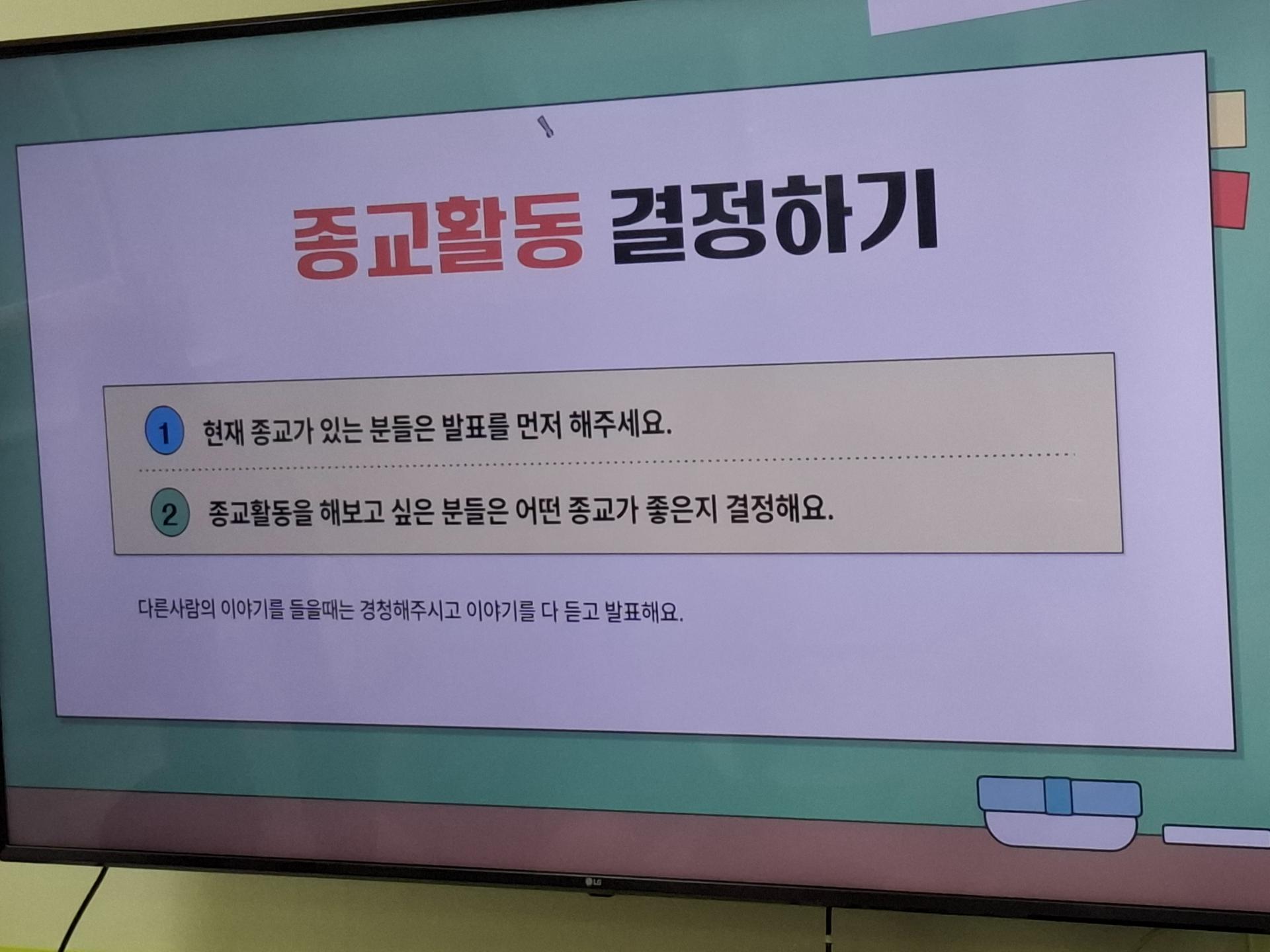 종교를 결정하는 시간도 가져보았네요~ 다들 적극적으로 참여해주셨답니다^^