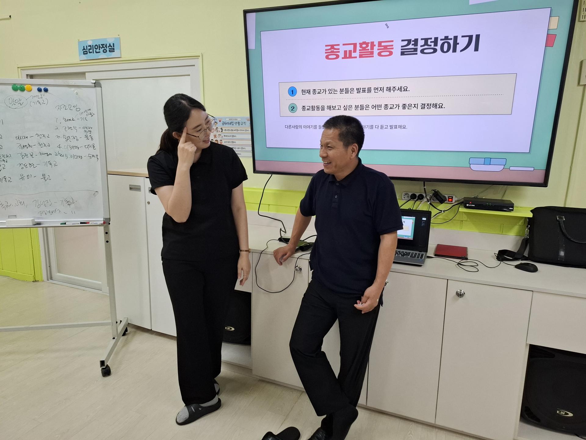종교가 있다면 존중하고 다른 종교에 대해서도 알아보고 종교활동을 하고 싶은 이용인분들은